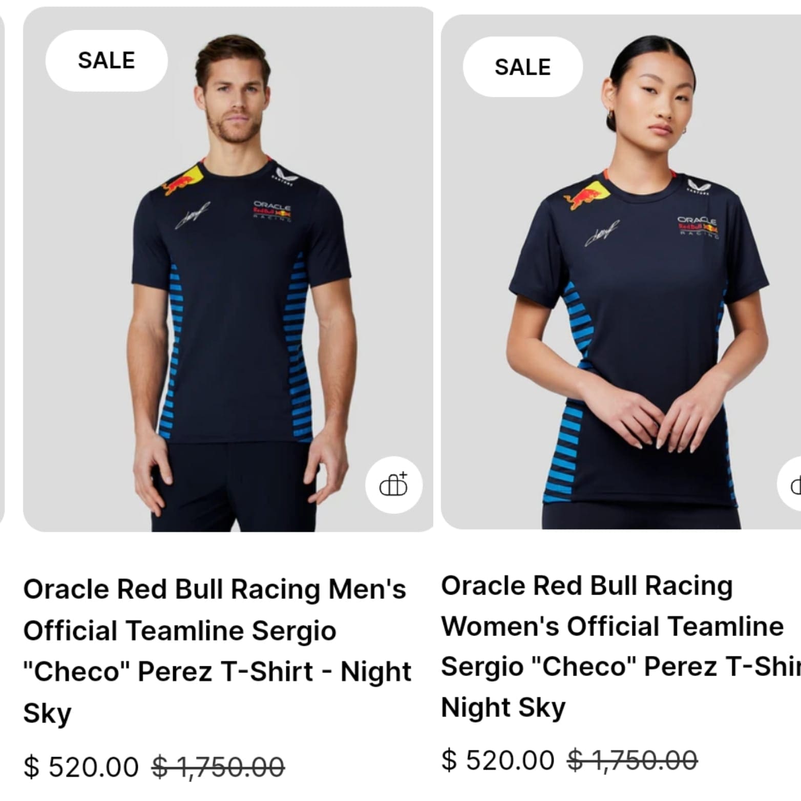 Y lo mismo mismo ocurre en muchos productos en la página oficial de Castore, empresa que viste a la escudería Red Bull y que vende la mercancía oficial a los fanáticos.