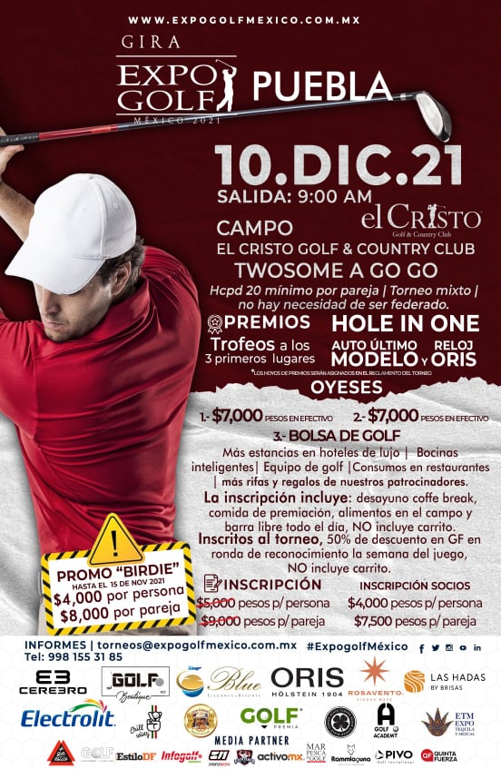 Puebla.- Puebla, una de las capitales más importantes del Golf en México. Esta ciudad que alberga más de 5 prestigiados campos de golf será la sede del último torneo del año de la Gira Expogolf México, la cual ya visitó Cancún, Morelos, Querétaro, Veracruz, EDOMEX y Campeche.