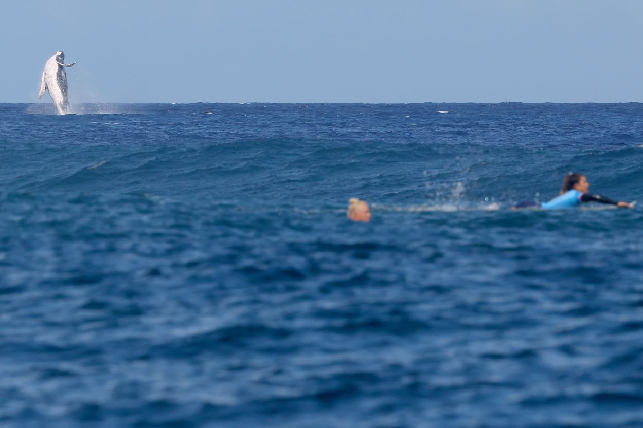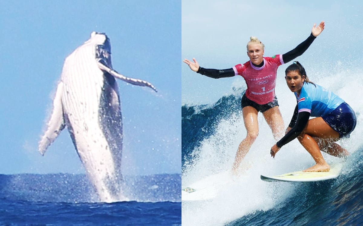 Durante el emocionante duelo en las semifinales femeniles de Surf de los Juegos Olímpicos de París 2024, una inesperada visitante robó el protagonismo, pues una ballena jorobada apareció en la escena.