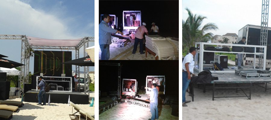 Además de un templete de estructura metálica tubular con techo de lona, se retiraron pantallas panorámicas, una cancha de futbol improvisada, 38 camastros, 18 sombrillas, así como listones y banderines que acordonaban una zona de dos mil 300 metros cuadrados que impedían el libre tránsito en Zona Federal.