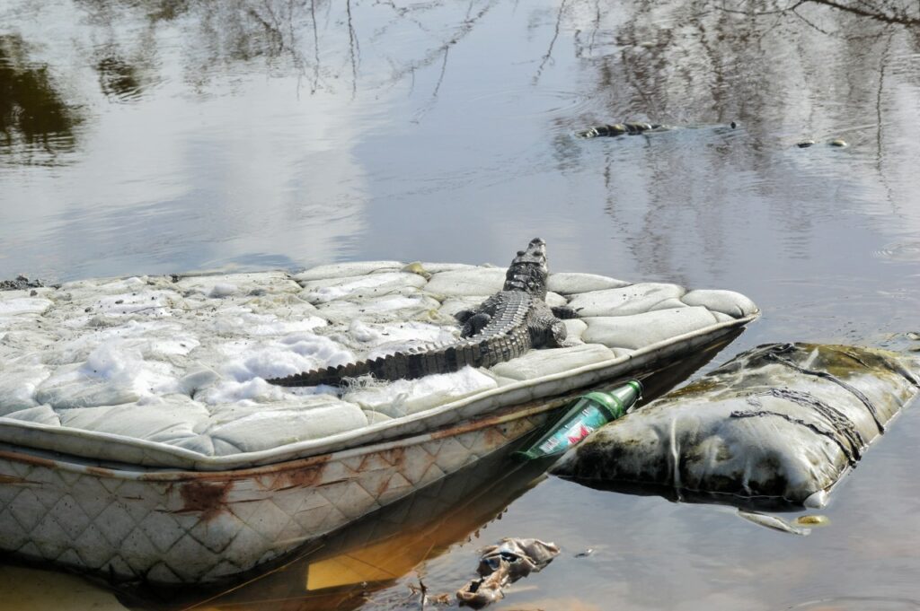 En las fotos se aprecia el humedal con relleno y animales que sufren el impacto de esta acción, entre ellos, aves y cocodrilos.