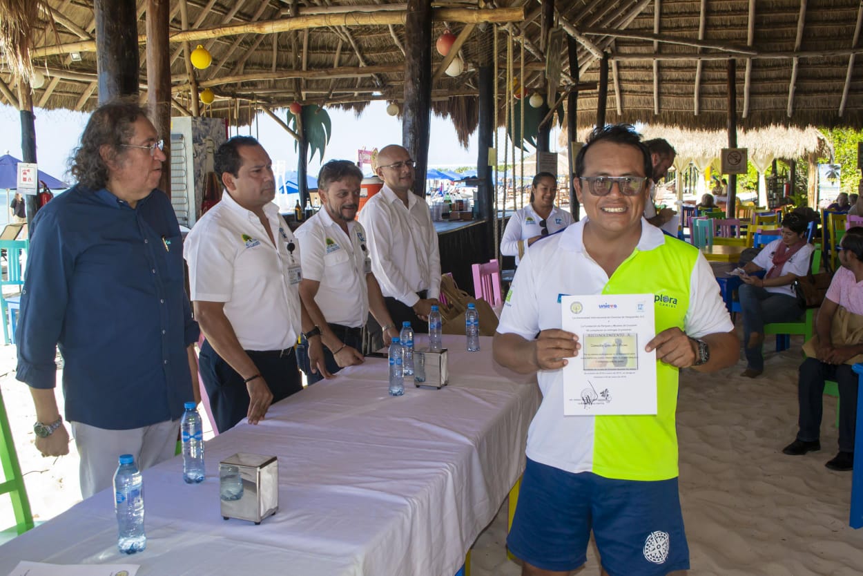 La entrega de constancias, se llevó a cabo en el parque Punta Sur y estuvo presente el doctor Daniel Quijano Oceguera, director general de la Universidad Internacional de Ciencias de Vanguardia (UNICVA), que es la instancia certificadora y avalada ante la Secretaría de Turismo Federal, y reconoció el interés de la FPMC en contar con personal capacitado para atender las nuevas exigencias del turismo.