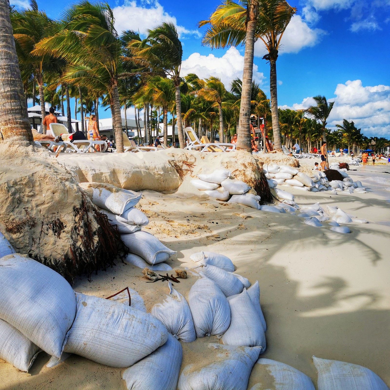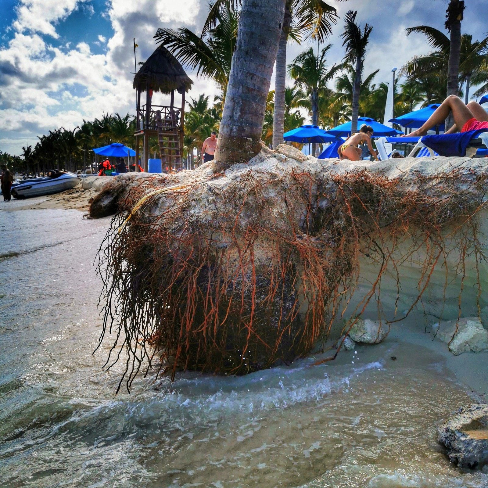 Para muestra el usuario Mike Berry publicó algunas fotografías que comprenden la zona de Playacar a la altura de The Reef. Ahí se puede ver el evidente peligro que corren las palmeras, ante la erosión de los arenales.