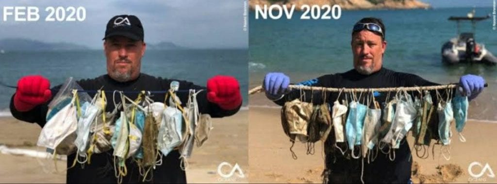 “Los millones de cubrebocas que están en el mar son solo la punta del iceberg”, comentaba el Dr. Teale Phelps Bondaroff, director de investigación en OceansAsia.