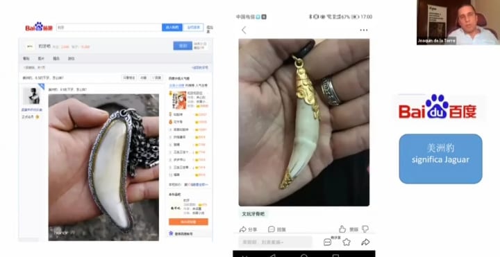 Durante la conferencia virutal “Comercio de vida silvestre en la era digital y el Covid-19”, organizada por la Sociedad Mesoamericana de Biología y Conservación, Capítulo Costa Rica, Joaquín de la Torre, director del Fondo para el Bienestar de los Animales (IFAW, por sus siglas) para América Latina y el Caribe, dio a conocer que se ha detectado tráfico de jaguar en China, principalmente.