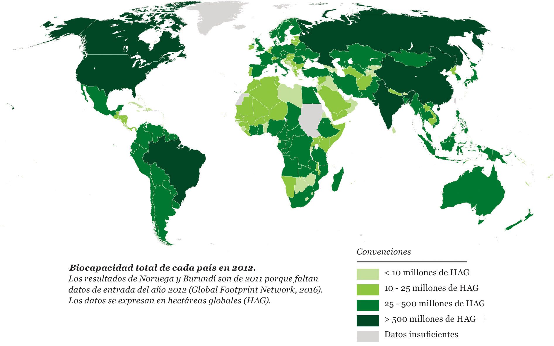 México se encuentra entre los países con mayor biocapacidad para proveer bienes y servicios, ya que posee entre 25 y 500 millones de hectáreas globales para producir materiales biológicos útiles y para absorber desechos generados por los humanos.