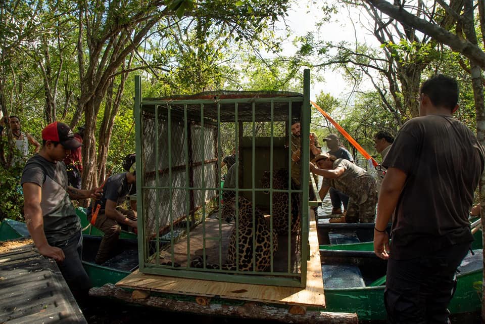La liberación se hizo con apoyo de Jaguares en la Selva A.C., para que pudieran readaptarse a la vida silvestre estas dos jaguares saludables y fuertes.