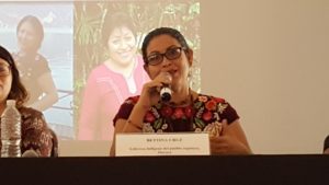 Durante la presentación del Informe se contó con la presencia de Estela Mondragón, defensora del territorio del pueblo rarámuri de Chihuahua; Claudia Cob, comisaria ejidal de Chocholá, Yucatán y de Bettina Cruz, defensora del territorio del pueblo zapoteco, quienes dieron sus testimonios sobre los obstáculos  y agresiones que han enfrentado por ser mujeres en la defensa de sus comunidades, territorio y recursos naturales.  Asimismo, se escucharon ponencias por parte de las especialistas Marisol Anglés, investigadora del Instituto de Investigaciones Jurídicas de la Universidad Nacional Autónoma de México (UNAM), y de Orfe Castillo, Coordinadora de País, México, de Asociadas por lo Justo (JASS).