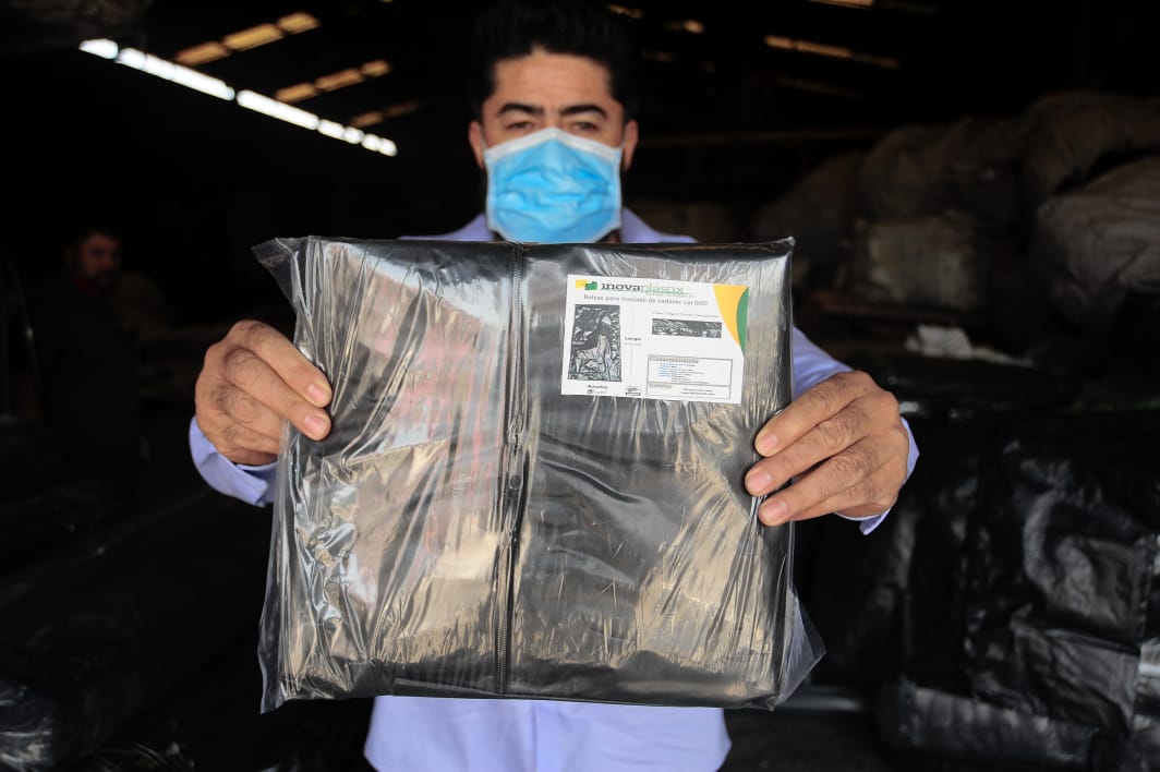 El entrevistado explicó que el material se acopia en la Ciudad de México, donde hay centros especiales a los que acuden los pepenadores a vender los residuos plásticos que recolectan. Luego trasladan la carga a la fábrica, ubicada a no más de 10 kilómetros de distancia. “El material pasa por un proceso de selección, se le quita la basura, se va a un proceso de compactado, peletizado, pasa por extruído, sellado y cortado, se empaca y se va al centro de distribución”.