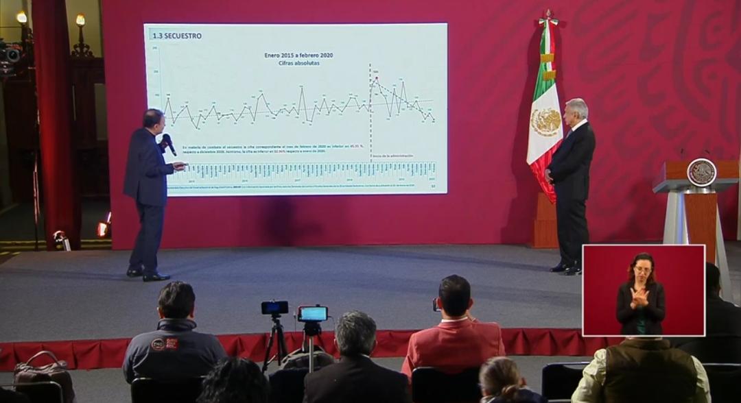 “Vamos en la ruta correcta para reducir de manera importante la incidencia en secuestros; en febrero se ha registrado una disminución de este delito de 12.96 por ciento respecto a enero de 2020”. Los estados en donde se registran más secuestros son Veracruz y Morelos.