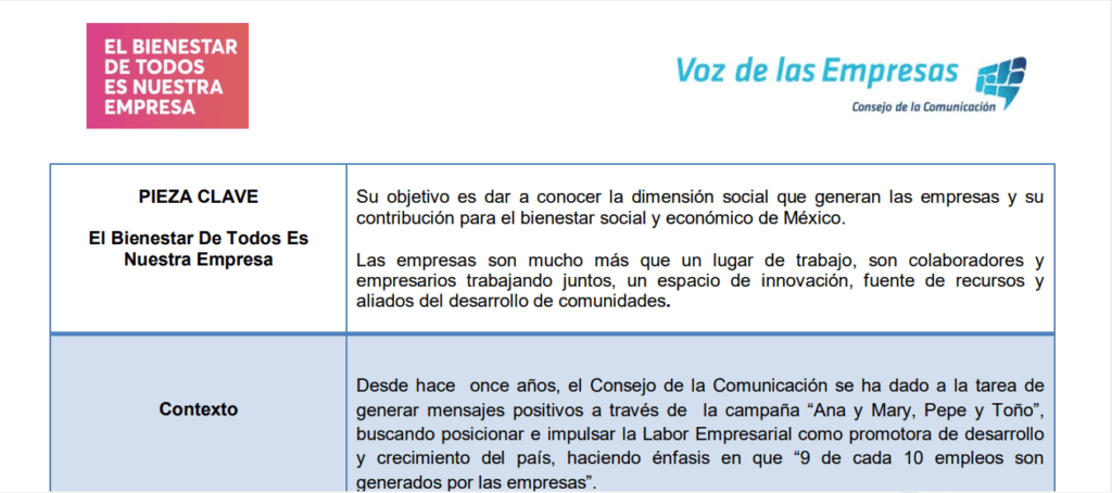 Su objetivo es dar a conocer la dimensión social que generan las empresas y su contribución para el bienestar social y económico de México.