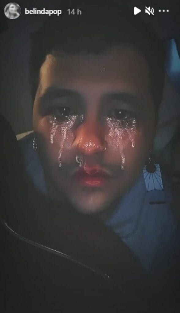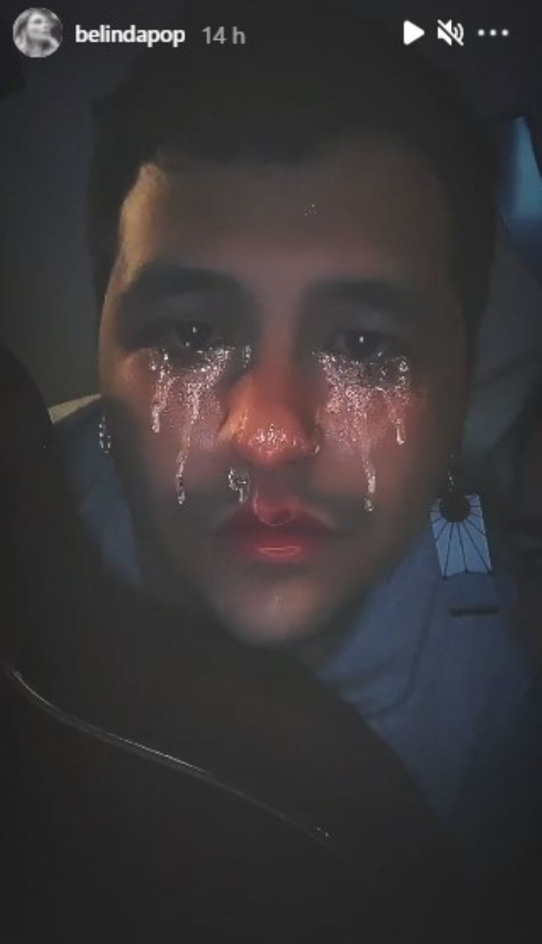 Hace unos momentos, por medio de su cuenta de Instagram, Belinda compartió una fotografía del intérprete de “Botella tras botella” llorando, por lo que surgieron especulaciones sobre una posible mala relación entre ellos.