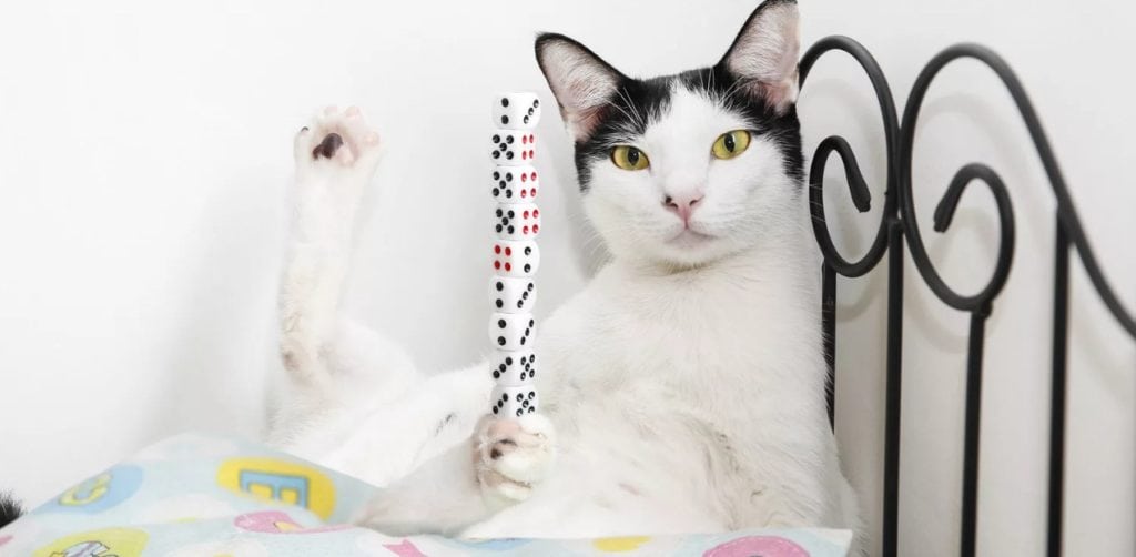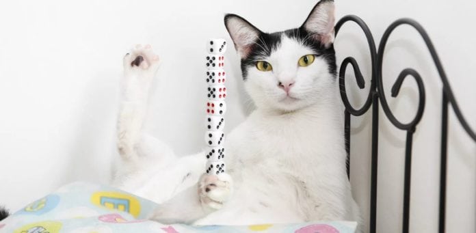 4.- La mayor cantidad de dados apilados en la pata de un gato, aunque parezca increíble Bibi logró apilar nueve dados, por lo que su dueño L.C. Siew de Malasia recibió el premio de los Récords Guinnes el 8 de junio de 2017.