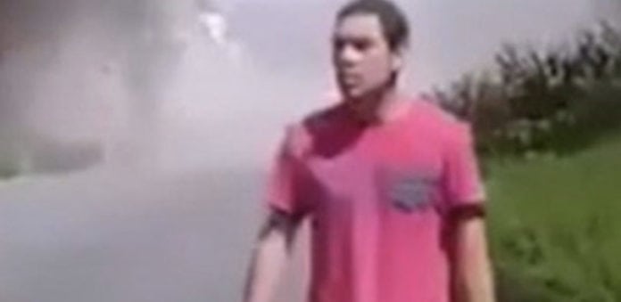 La conmoción en redes sociales fue debido a uno de los video grabados en el preciso momento, donde por cuestión de enfoque, pareciera que el joven sale literalmente de la nada.