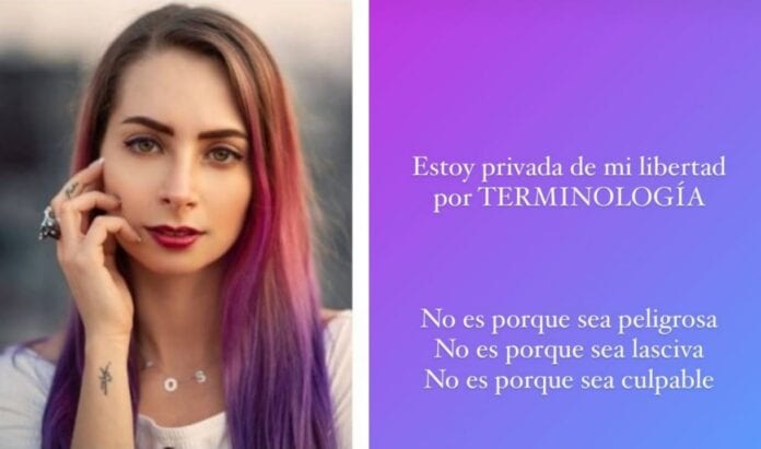 “Estoy privada de mi libertad por TERMINOLOGÍA. No es porque sea peligrosa. No es porque sea lasciva. No es porque sea culpable”, se lee en la historia compartida por la red social.