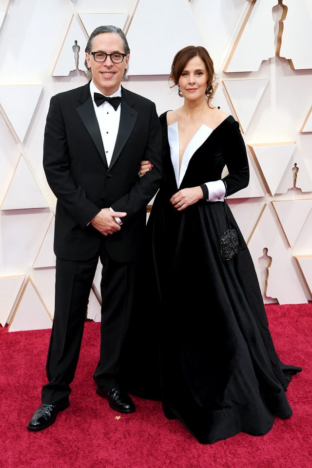 El mexicano Rodrigo Prieto, nominado a mejor fotografía por El irlandés, junto a su mujer, Monica Prieto.