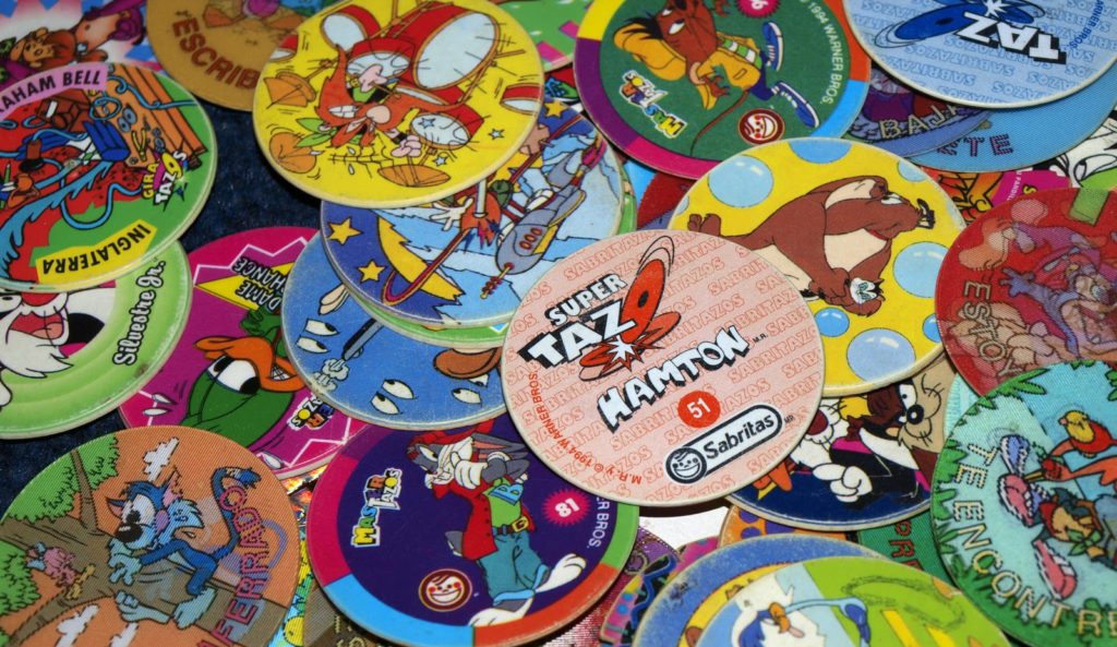 No había juguetes más codiciados que los tazos a la hora del recreo, donde era recurrente ver a niños “echar la reta” para apostar estos tazos y ganar cuando volteabas más que todos.