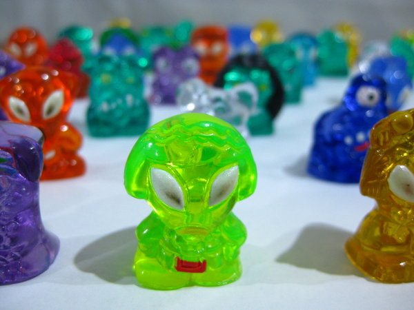 Figuras de plástico semitransparente que eran coleccionables, lanzadas por Coca Cola.