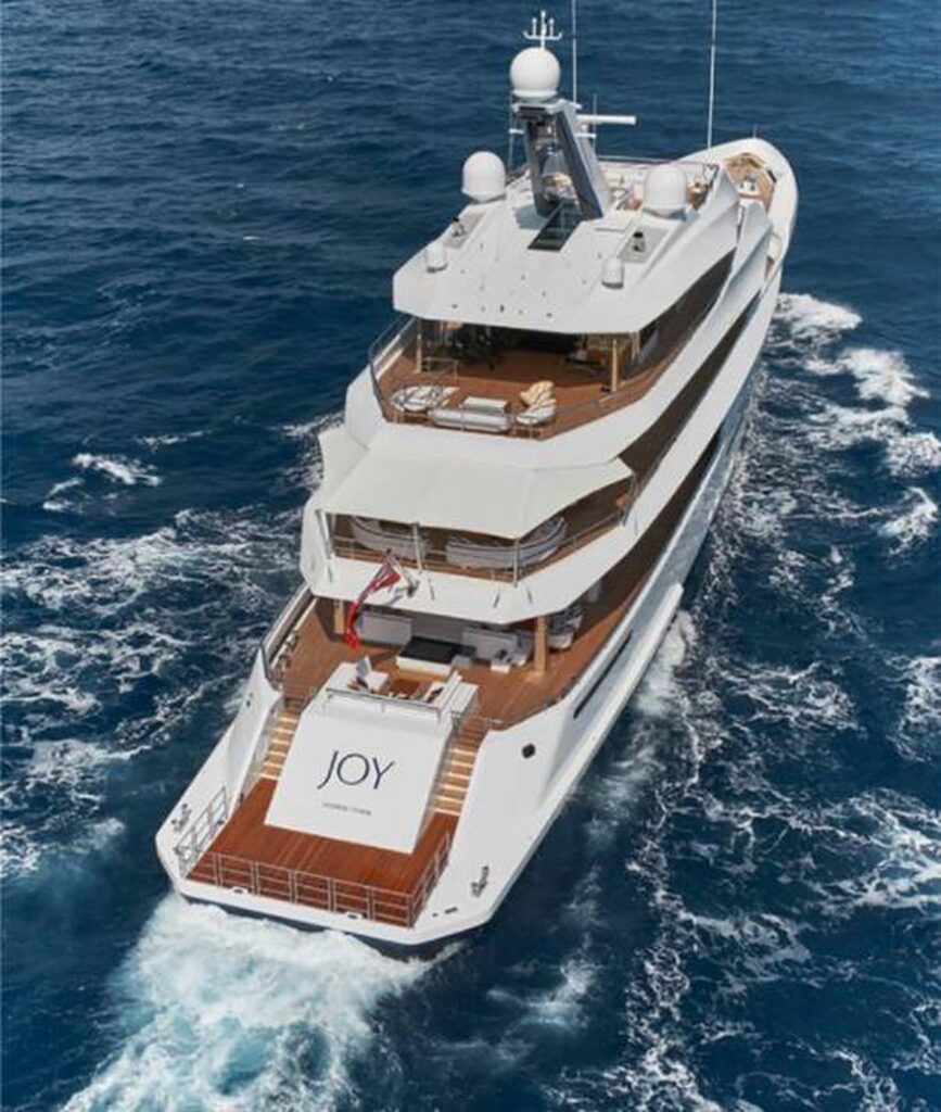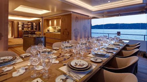 El yate mide más de 70 metros de largo y cuenta con una cancha de básquetbol y un elevador, además, permite una vista al mar de 270 grados y tiene capacidad para recibir hasta 31 personas.