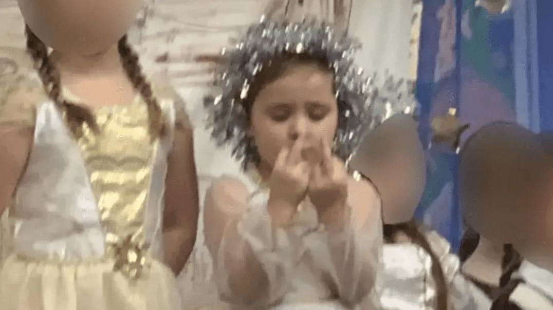 Una niña de 5 años durante una obra de teatro de su escuela, estuvo saludando a su mamá con la famos ‘Britney-señal’ y rápidamente se ha hecho viral.
