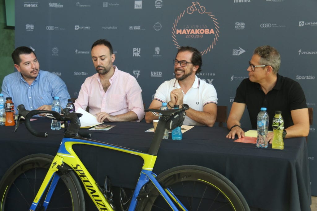 Estuvieron presentes en la conferencia de prensa: José Antonio Pardo, director de la Vuelta Mayakoba; Luis Trejo, organizador técnico del evento; Alfonso Lopez-Bello, director de Voluntarios de Mayakoba y Víctor Aranda, director de Marketing Mayakoba.