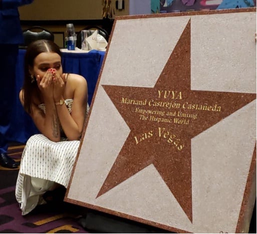 La youtuber e influencer mexicana, Mariand Castrejón mejor conocida como Yuya, obtuvo el día de hoy la estrella con su nombre en el Paseo de la Fama de Las Vegas, esto por ser un ejemplo para la comunidad hispanohablante.