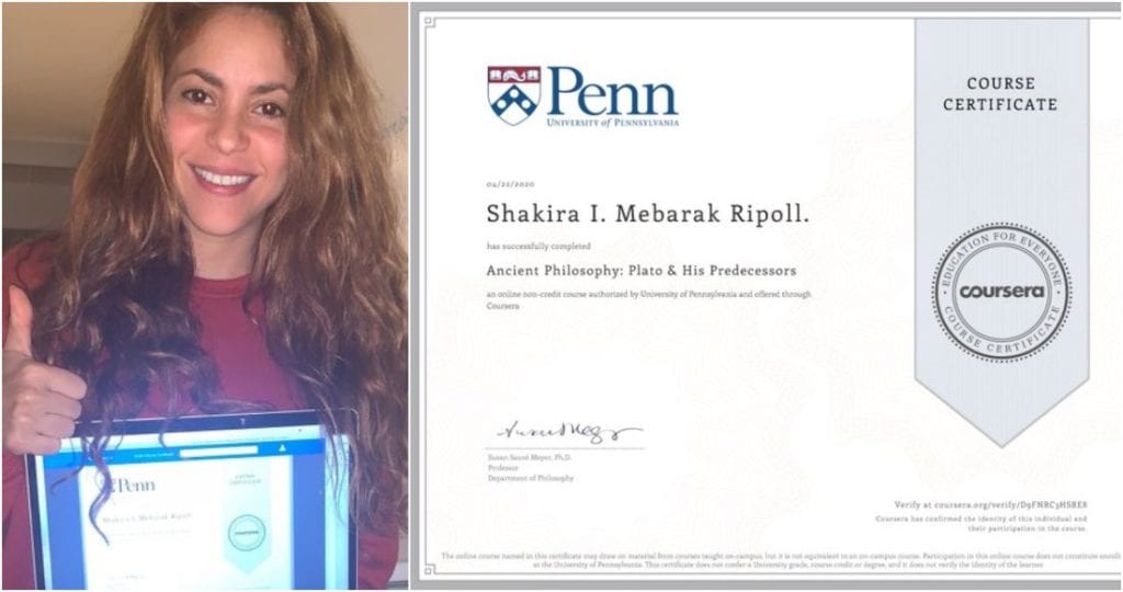 Ejemplo de lo anterior, fue la cantante Shakira, que tomó un curso desde hace cuatro semanas de Filosofía Antigua mientras sus hijos dormían. Ahora se ha graduado por la Universidad de Pennsylvania.