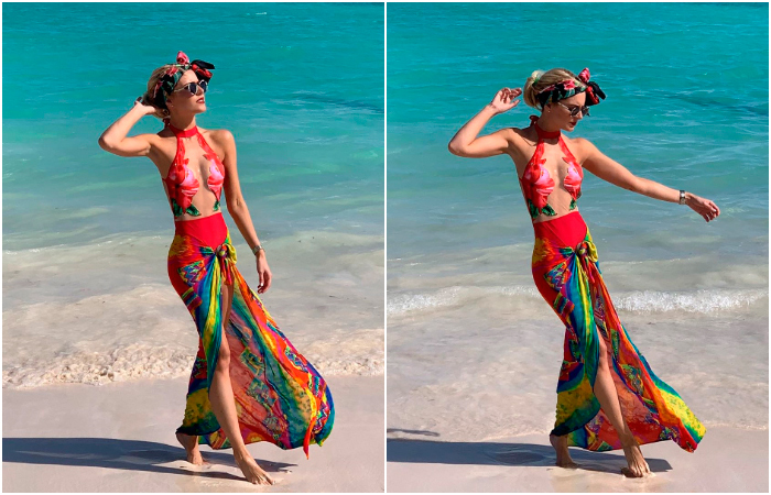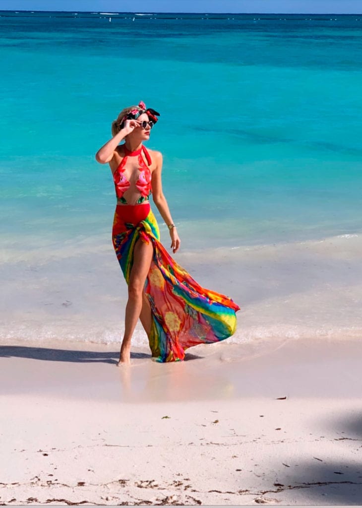 El paradisiado destino donde se encuentra, es el mejor escenario para una excelente sesión de fotos donde presume su faceta de modelo, su espectacular figura y es estilo único.