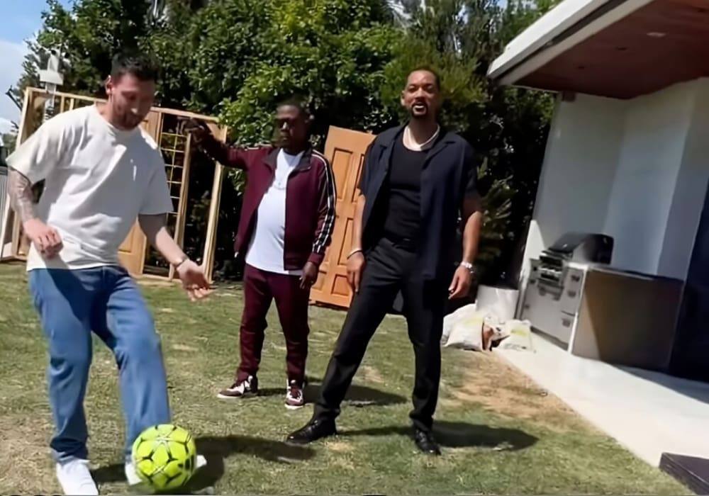 Durante el fin de semana, Smith publicó un video en Instagram de él y Lawrence a punto de patear un balón de fútbol, antes de que Messi aparezca en el cuadro pateando para hacer lo que mejor sabe hacer.