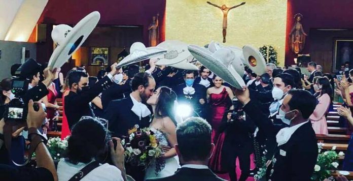 La boda, no fue motivo para que los festejados decidieran celebrar a lo grande, sin embargo sí realizaron una celebración íntima al estilo charro y aunque la mayoría de los invitados traían puesto cubrebocas, en videos filtrados en redes sociales se mostró que ni Alejandro ni Camila lo usaron.