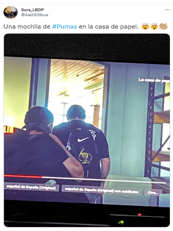 A través de Twitter, un usuario compartió una captura de pantalla en la que señaló que Pumas UNAM formaba parte de la serie La Casa de Papel.