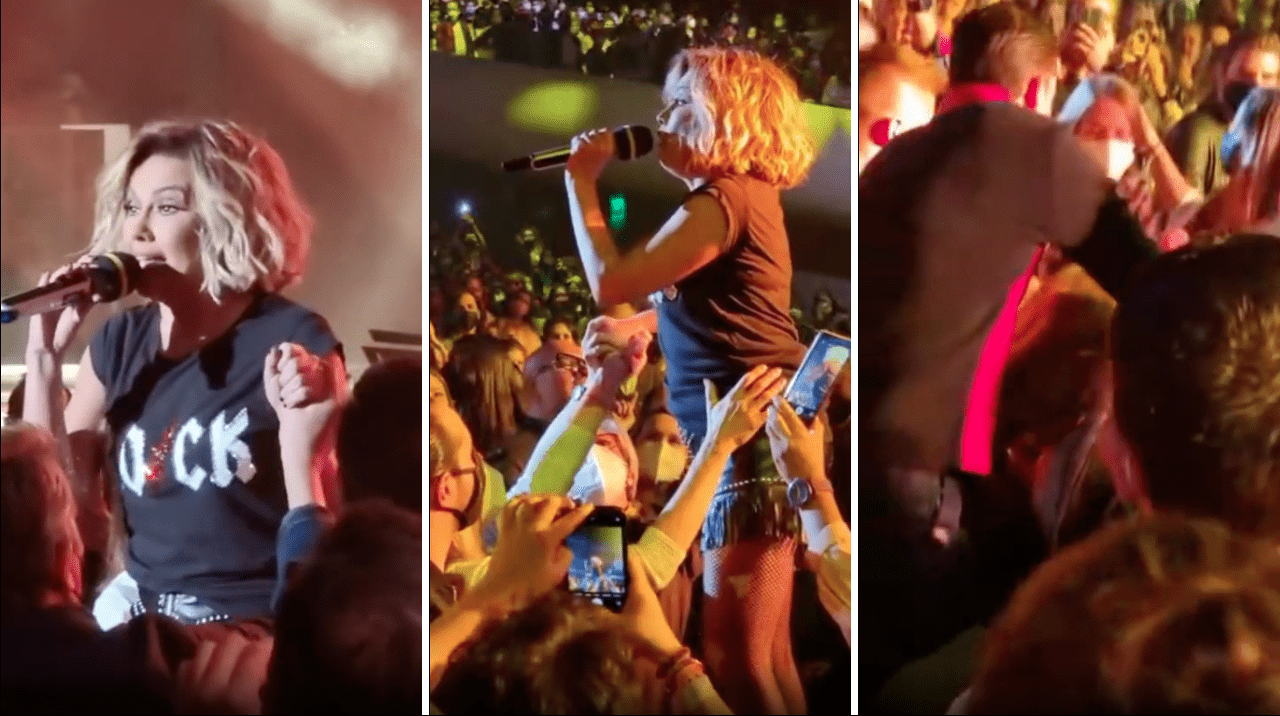 Aunque este incidente no la detuvo y siguió cantando mientras se levantaba de en medio de las butacas. Incluso sonrió a un fan que estaba grabando el emotivo momento.