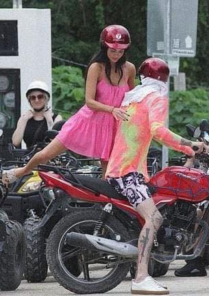 Tulum.- Megan Fox es vista en Tulum luciendo un vestido corto color rosa mientras se sube a la moto de Gun Kelly.