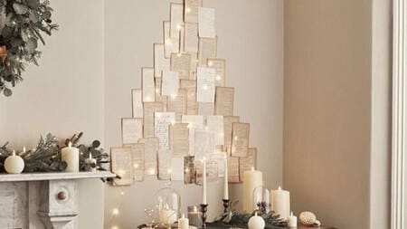 Si aún mantienes la idea de poner un árbol de navidad, puedes buscar otra alternativa más creativa e innovadora; sobre todo, si no cuentas con espacio para ponerlo. Desde estanterías de libros con luces o esferas colgantes, el resultado es muy atractivo.