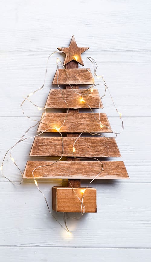 Si buscas algo muy nórdico, minimalista y que apenas ocupe espacio, estos árboles de Navidad de madera que se cuelgan de la pared son perfectos. Puedes ponerles unas luces y unas esferas y tendrás una pieza muy diferente a la de tus vecinos, en minutos.