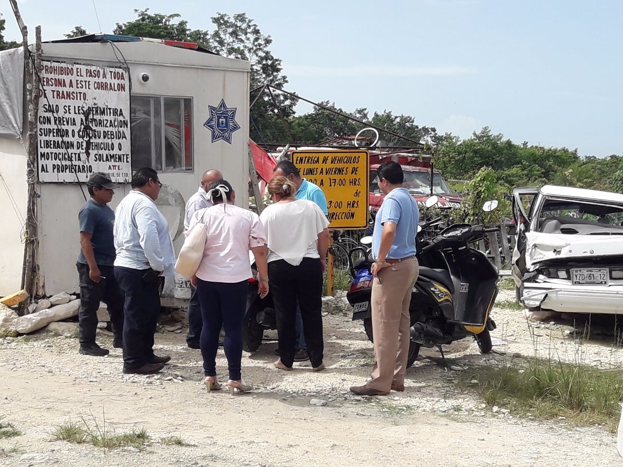 Los regidores Marco Loeza Méndez y Carlos Hernández Ojeda acudieron al corralón para verificar el estado físico del parque municipal, la que no pudo realizarse, pues no apareció el síndico, Fidencio Balam Puc.