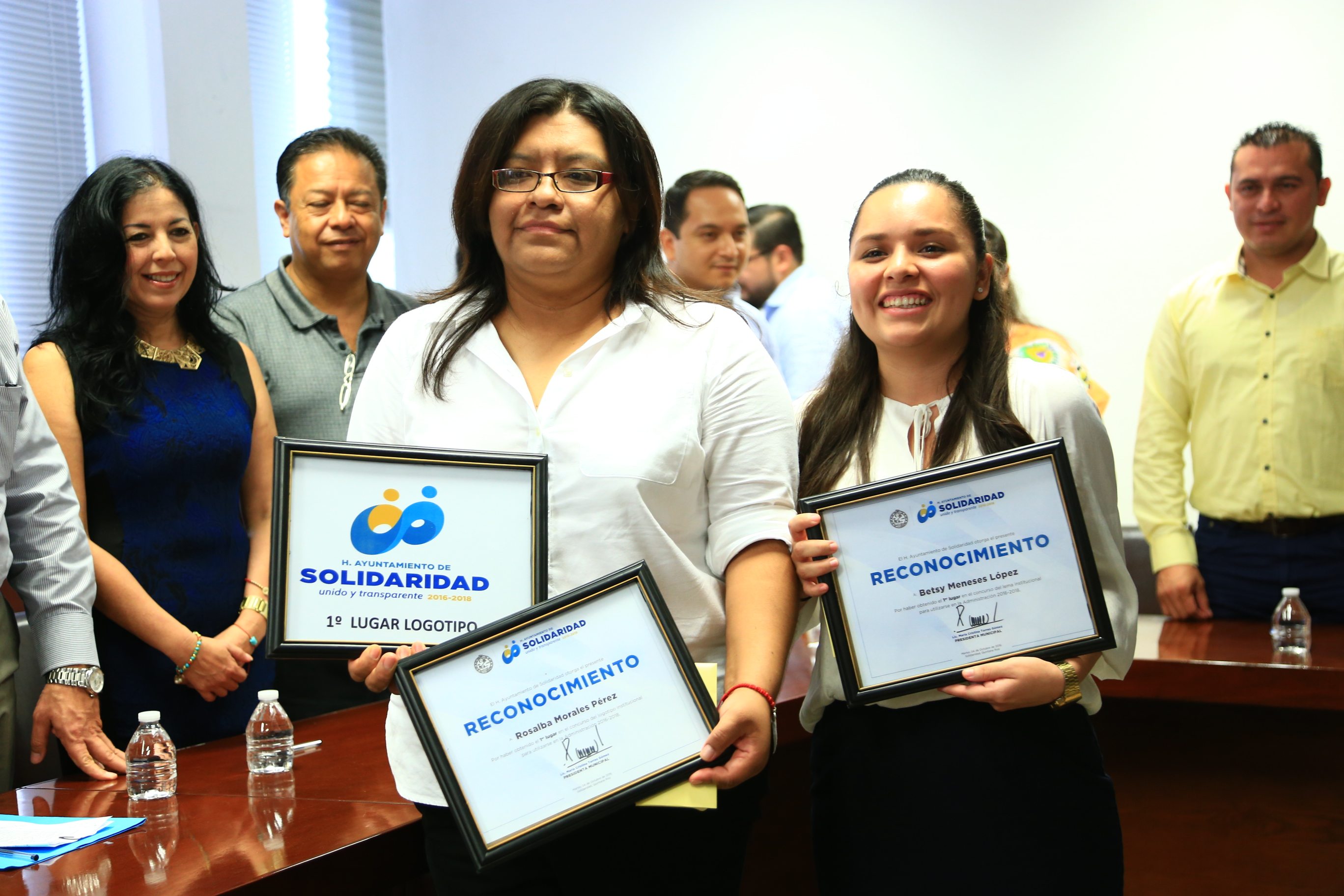 La presidenta de Solidaridad Cristina Torres Gómez, encabezó la premiación del concurso que se hizo para obtener el logotipo y lema institucional de la administración pública 2016-2018.