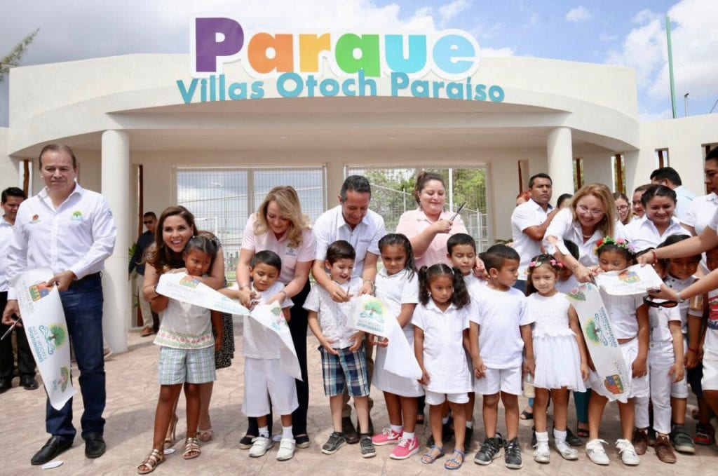 Este mediodía, el gobernador de Quintana Roo, Carlos Joaquín González y la presidenta del Sistema DIF Quintana Roo, Gaby Rejón inauguraron el parque Villas Otoch Paraíso, ubicado en la avenida Leona Vicario, de la región 259, en la ciudad de Cancún. Es un espacio público que se rescató para restablecer la convivencia social y contribuir a inhibir el delito de acuerdo con el Modelo de Prevención Quintana Roo.