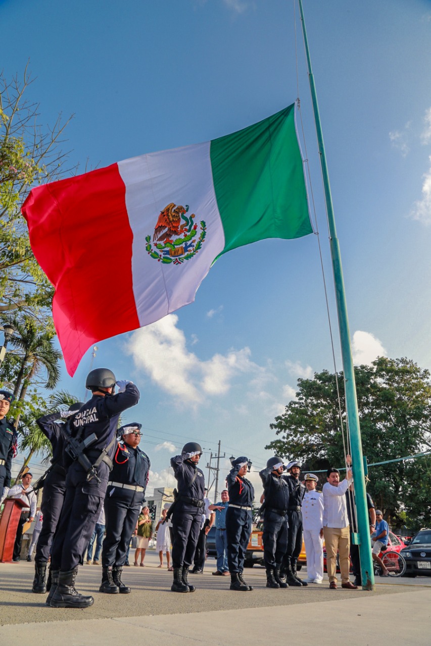 Tulum.- Al presidir el CXCVIII Aniversario (198°) de la Bandera Nacional, el presidente Víctor Mas Tah, afirmó que es un enorme orgullo y bendición haber nacido en México y que nuestro lábaro patrio nos llena de emoción y exalta nuestros sentimientos por la nación.