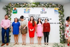 Tulum.- Diecisiete parejas formalizaron su unión ante el Registro Civil, en la ceremonia de Bodas Colectivas 2019, organizadas por el DIF Tulum y el Ayuntamiento, en donde la presidenta honoraria de la institución, Celia Aguilar Mas, resaltó la importancia de la convivencia familiar y que asuman con respeto la responsabilidad de disfrutar su vida al lado de otra persona.