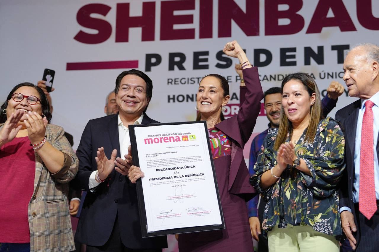Claudia Sheinbaum Pardo se registró como precandidata única para la Presidencia de la República por parte de la alianza “Sigamos Haciendo Historia” conformada por Morena, Partido Verde (PVEM) y el Partido del Trabajo (PT) y presentó sus puntos de “visión estratégica” para continuar con la Cuarta Transformación.