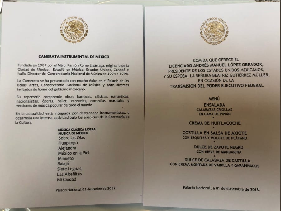 Después de que Andrés Manuel López Obrador tomara protesta como presidente de México durante el periodo 2018-2024, inició la fiesta en Palacio Nacional, en el centro de la Ciudad de México, donde los 400 invitados probaron un menú muy mexicano.