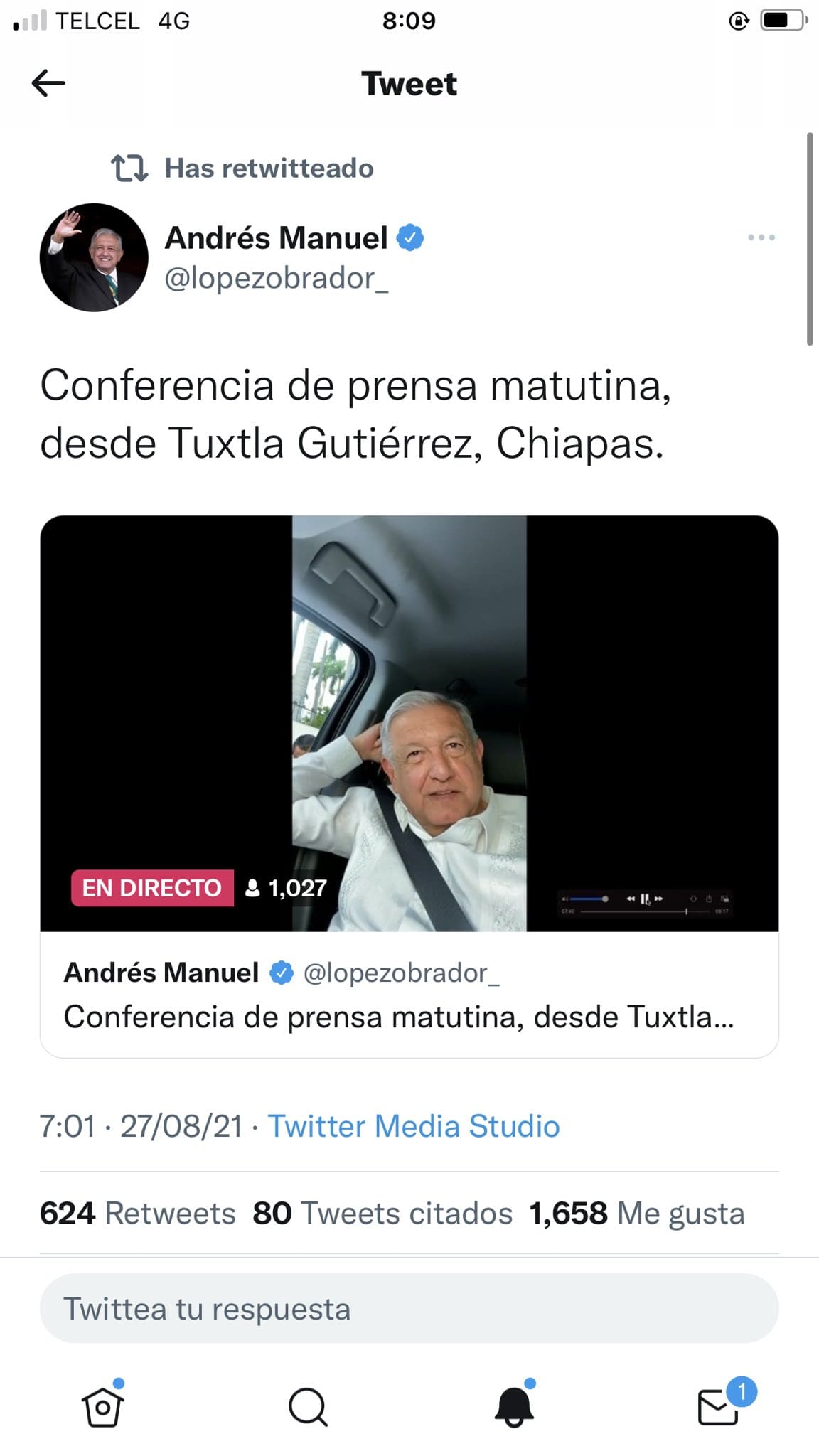 También pidió que se le deje continuar su gira por Chiapas y al término del videomensaje del presidente López Obrador se concluyó la transmisión de la mañanera.