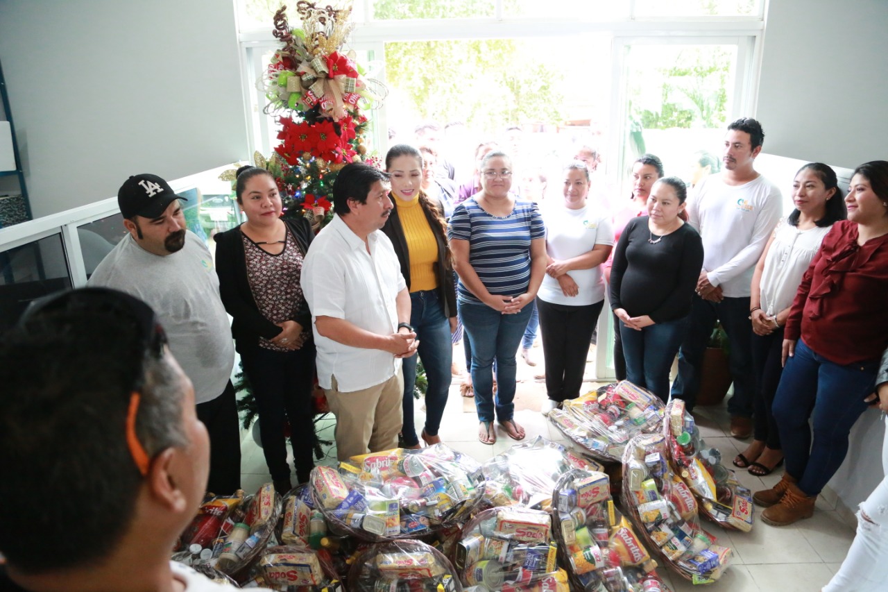 Ante los trabajadores del DIF Municipal, señaló que aparte de la noble labor que realizan a favor de la ciudadanía, tengan tiempo para estar con sus familias en estas fiestas decembrinas y acompañada del presidente municipal, Víctor Mas Tah, les entregó unas canastas navideñas en reconocimiento a las actividades que han realizado en la presente administración.