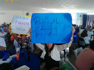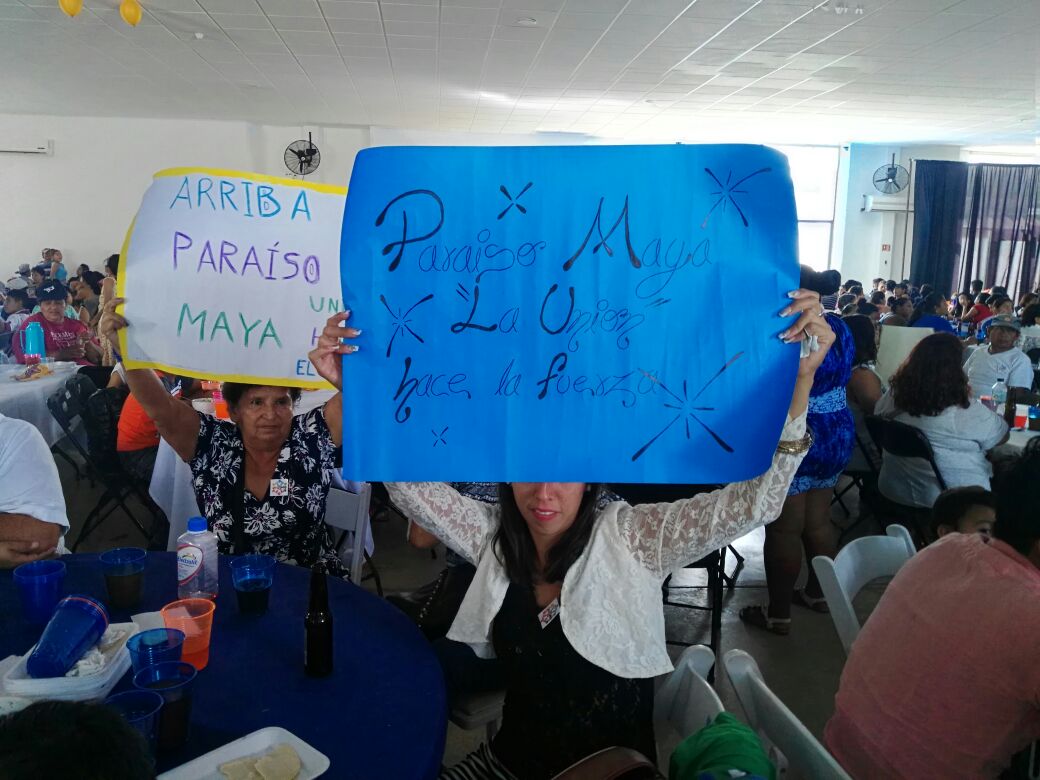 Los grupos de familias, que portaban carteles señalando a qué regiones pertenecían y que fueron traídas al Salón Turquesa en autobuses de Autocar y Turicun rentados para la ocasión, disfrutaron de la comida, música y la animación, en un evento que el panista negó se tratara de un acto anticipado de precampaña, sino un simple cumpleaños, que deseó celebrarlo con la gente.