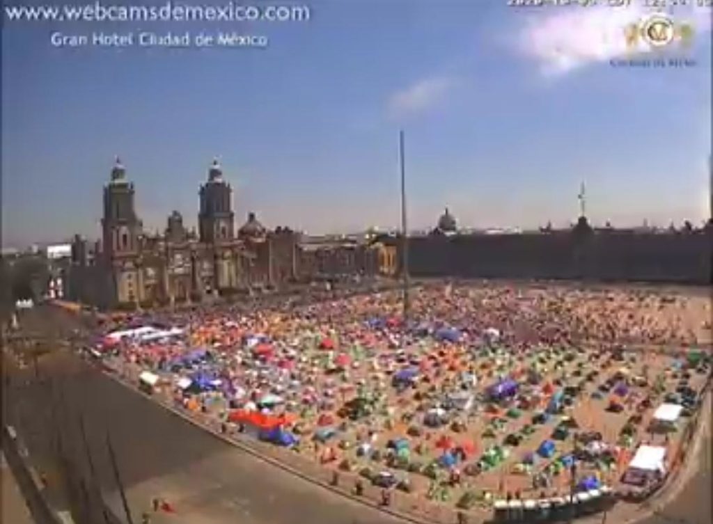 Dice: “Video timelapse del Zócalo #CDMX desde las 11am hasta las 4:02pm de hoy 3 de octubre 2020″, es decir, del tiempo en el que se supone transcurrió la manifestación.