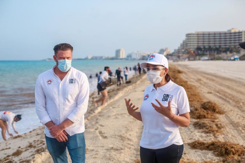 La Presidente Municipal de Benito Juárez, Mara Lezama, enfatizó que pese al cierre temporal de estos espacios públicos por la pandemia del COVID-19, como lo marcan las autoridades sanitarias y el semáforo epidemiológico, la limpieza que realiza la administración municipal no se ha detenido ya que se sigue registrando la presencia atípica de sargazo en esta temporada del año.