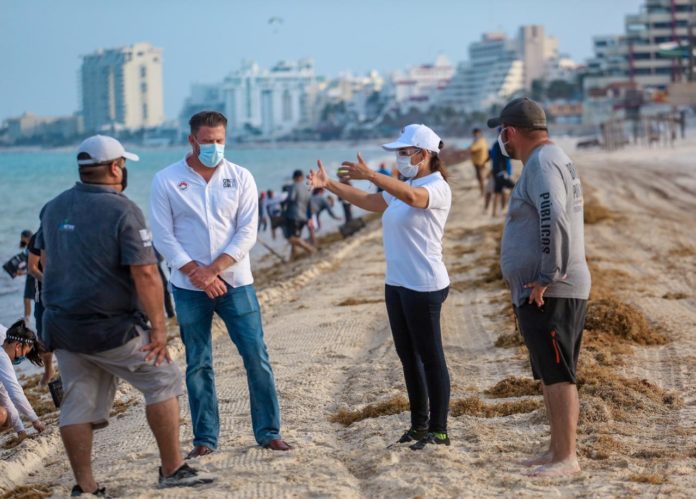 La Presidente Municipal de Benito Juárez, Mara Lezama, enfatizó que pese al cierre temporal de estos espacios públicos por la pandemia del COVID-19, como lo marcan las autoridades sanitarias y el semáforo epidemiológico, la limpieza que realiza la administración municipal no se ha detenido ya que se sigue registrando la presencia atípica de sargazo en esta temporada del año.