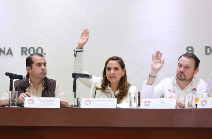 Cancún.- La Presidente Municipal de Benito Juárez, Mara Lezama encabezó la Trigésima Segunda Sesión Ordinaria de Cabildo realizada en el recinto “20 de Abril”, en la cual sus integrantes por unanimidad autorizaron la impresión de la leyenda “2020, Año del 50 Aniversario de la Fundación de Cancún” en toda la documentación oficial expedida por las dependencias y entidades del municipio.