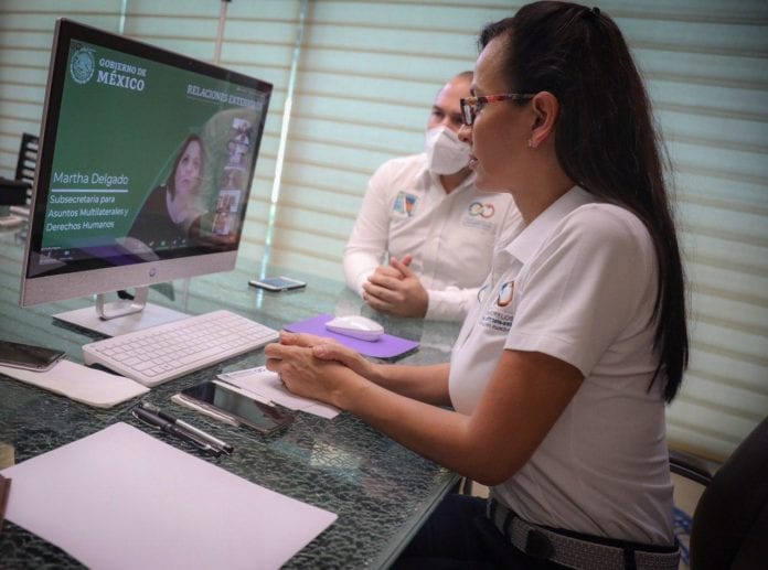 Laura Fernández participó hoy en una videoconferencia convocada por la subsecretaria de Asuntos Multilaterales y Derechos Humanos de la SRE, Martha Delgado Peralta, con el fin de establecer criterios que puedan aplicarse en el proceso de reactivación económica.